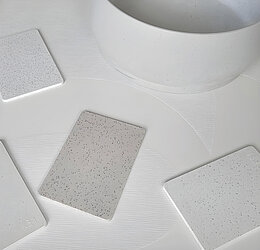 Darüber hinaus sind auch Bio-PEB-Keramikeffekte für das Spritzgießen erhältlich. Je nach Füllstoffanteil (von 20 bis 50 %) sind verschiedene technische Kompromisse möglich, wobei eine einfache Verarbeitung und eine perfekte Oberflächenqualität sichergestellt bleiben. Wie bereits bei anderen Lösungen ist es ROMIRA auch hier gelungen, eine einzigartige Kombination zu entwickeln: Bio-PEB-Keramik mit „Speckle- oder Salz-und-Pfeffer-Effekt“. Neben ästhetischen Vorteilen sind ab sofort auch eine „Cool Touch“-Haptik und eine hohe Dichte bei gleichzeitig geringerer CO2-Bilanz verfügbar.
