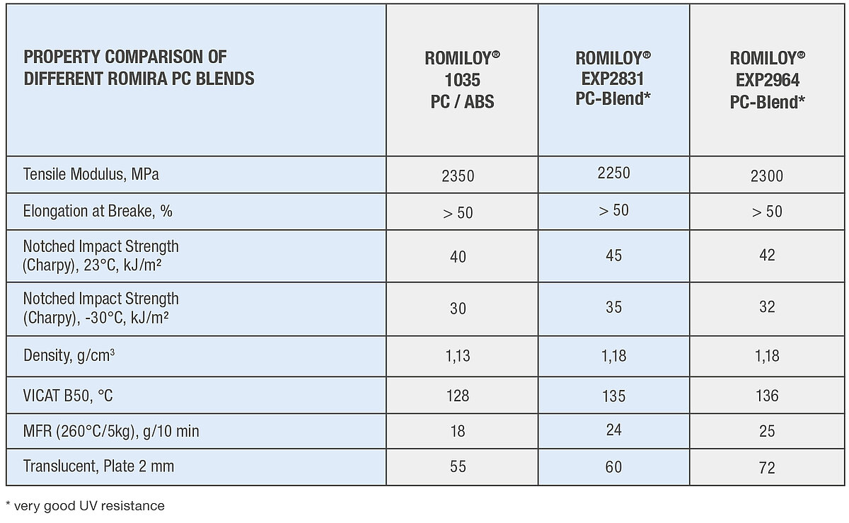 The ROMIRA experts have now succeeded in impact-modifying polycarbonate with a new formulation and process development, while maintaining a high level of translucency. At the same time, the higher level of translucency allows for brilliant and deep color adjustment of the products.